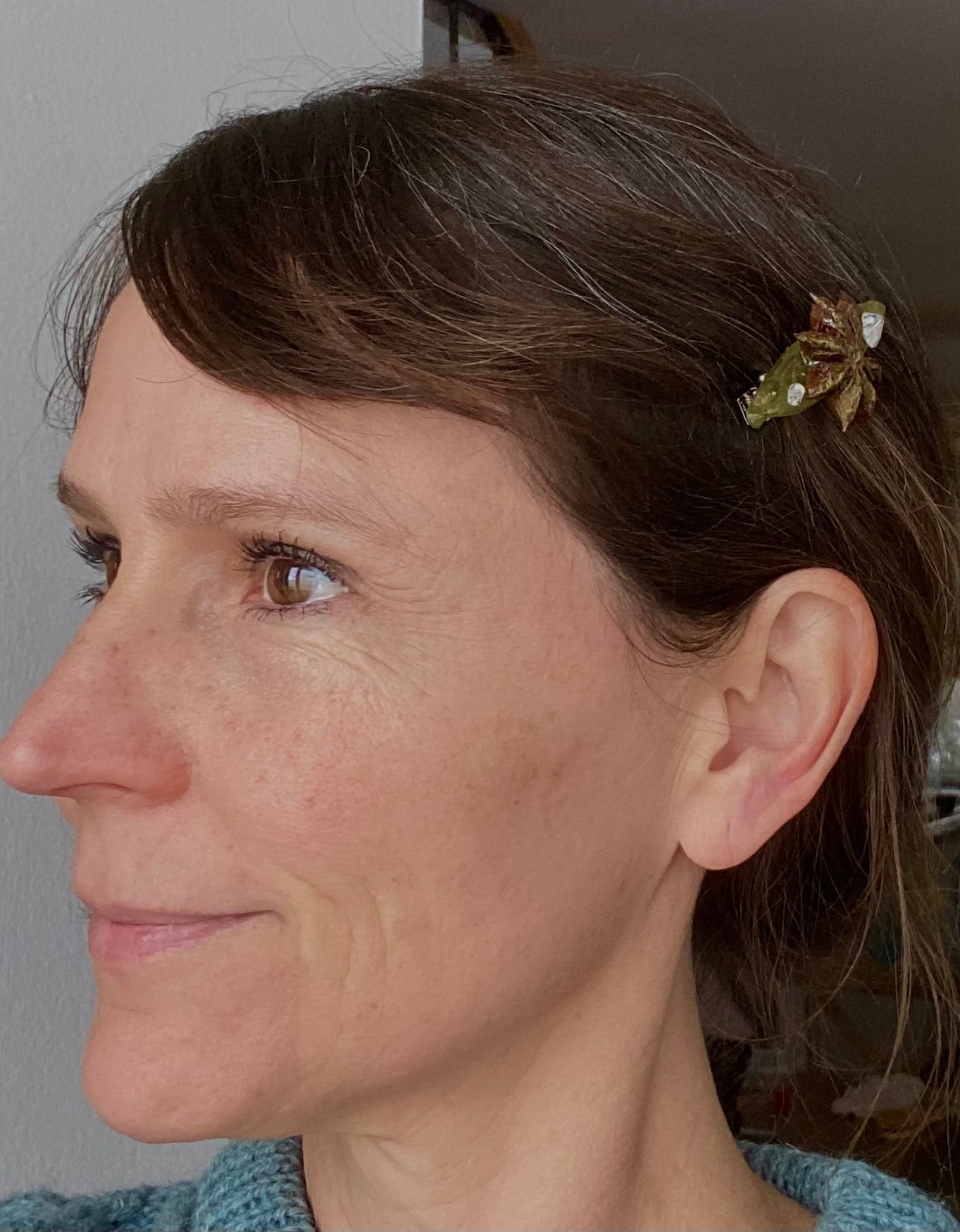 Pin con estrella de Anís y cristales de Swarovski, pieza única que se puede utilizar en el cabello o en la ropa.